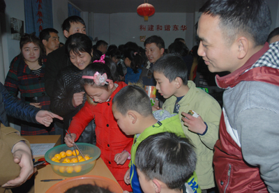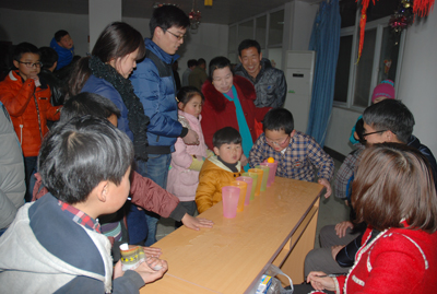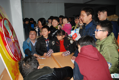 今年的“元宵游園”節(jié)目豐富多彩,有猜謎語(yǔ)、投飛標(biāo)、吹乒乓球、摸彩球、拼成語(yǔ)等,這些活動(dòng)全部由各分工會(huì)設(shè)計(jì)、承辦。今年的獎(jiǎng)品豐富,有微波爐、電飯煲、羊毛被、四件套等等。雖然都是小節(jié)目,但每個(gè)節(jié)目都有小禮品贈(zèng)送,大大增強(qiáng)了員工的參與積極性,特別是許多員工帶著孩子共同參與,現(xiàn)場(chǎng)上演著一場(chǎng)場(chǎng)“親子秀”,每個(gè)人的臉上都洋溢著笑容。