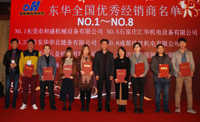 會(huì)議期間,宣董事長向東華16名2015年度“優(yōu)秀經(jīng)銷商”和盾牌6名“優(yōu)秀經(jīng)銷商”頒發(fā)了榮譽(yù)證書,并合影留戀。
