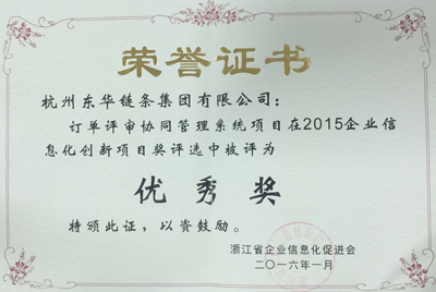東華自創(chuàng)建以來,一直高度重視企業(yè)信息化建設(shè)工作,取得良好成效。日前,訂單評審協(xié)同管理系統(tǒng)被浙江省企業(yè)信息化促進會授予“2015企業(yè)信息化創(chuàng)新項目優(yōu)秀獎”稱號。