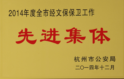 公司近兩年經(jīng)過對治安管理加大投入,尤其是強(qiáng)化保衛(wèi)隊(duì)伍組織建設(shè)及重點(diǎn)部位防盜硬件設(shè)施、技術(shù)裝備投入的有效運(yùn)行,公司保衛(wèi)工作成效顯著,先后被授予“2014年度全市經(jīng)文保保衛(wèi)工作先進(jìn)集體”稱號,保衛(wèi)科被授予“余杭區(qū)經(jīng)濟(jì)文化保衛(wèi)戰(zhàn)線先進(jìn)集體”榮譽(yù)稱號。