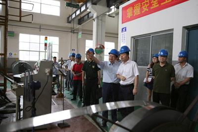 6月27日,余杭區(qū)委常委、副區(qū)長(zhǎng)祝振偉率區(qū)經(jīng)信、商務(wù)、安監(jiān)、消防和余杭經(jīng)濟(jì)技術(shù)開發(fā)區(qū)等部門負(fù)責(zé)人突擊到東華集團(tuán)進(jìn)行安全生產(chǎn)檢查。集團(tuán)公司副總經(jīng)理廖杭州、管理部綜合處長(zhǎng)劉冬根等陪同檢查。