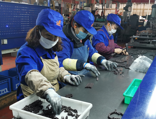 10天之內(nèi)還要交付廣東客戶的1000條口罩機鏈條,東華汽車鏈事業(yè)部接到訂單后,臨時抽調(diào)一批10年以上的老員工進行培訓上崗,調(diào)配生產(chǎn),正加班加點緊急趕貨,預計2月19日前保質(zhì)保量提前交貨。