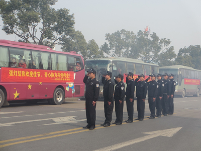 當(dāng)天是公司上班的最后一天,中午12點30分,在鞭炮齊鳴聲中,在保安們整齊劃一的敬禮中,在現(xiàn)場員工們的揮手中,9輛包車載著返鄉(xiāng)的員工們緩緩地離開了廠區(qū),駛向各自的家鄉(xiāng)。集團(tuán)副總經(jīng)理袁立華等一行領(lǐng)導(dǎo)也到現(xiàn)場歡送大家。