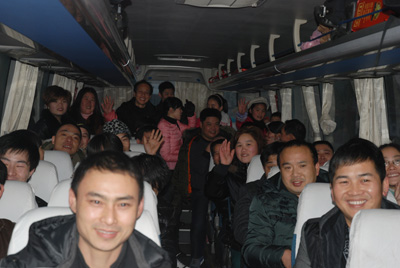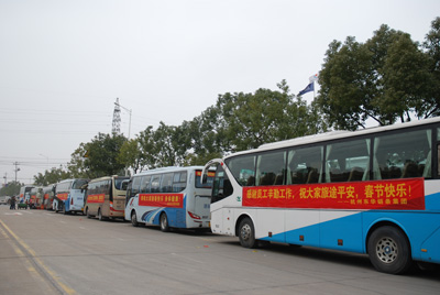 今年春節(jié),公司在安徽六安、江西廣豐、河南鄭州、湖北武漢、湖南長沙等員工較集中的方向設(shè)置了10條線路的包車,除利用其他方式回鄉(xiāng)的員工,共有365人乘坐包車。在傳動鏈?zhǔn)聵I(yè)部工作的江西員工袁根英說,以前每年回家都很難買到火車票,而且要到很遠(yuǎn)的蕭山南站坐火車很不方便,自從近年公司組織包車送他們回家后,她說又方便又省心了,感覺很溫暖,企業(yè)為員工考慮的很周到,感激之情溢于言表。