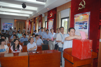 本屆黨委換屆選舉,除出國、工作調(diào)動及生病外,到會參與選舉的正式黨員共65名。經(jīng)過廣大黨員嚴(yán)肅認(rèn)真的無記名選舉、投票、監(jiān)票、唱票等公平公正的選舉程序。魯小林同志高票當(dāng)選本屆黨委書記。徐美珍、廖杭州、趙鵬飛、 蔣錫林當(dāng)選為黨委委員。