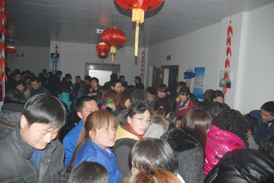 今年的“鬧元宵”游園節(jié)目豐富多彩,既有傳統(tǒng)的猜謎語、釣魚、看字表演活動,也有投羽毛球、吹乒乓球等新式活動,這些活動全部由各分工會設(shè)計、承辦。每個小節(jié)目都有禮品送,十多個節(jié)目玩下來,有些員工手上拿滿了禮品,再去抽獎。今年的獎品豐富,有MP5、電飯煲、床上用品、吹風(fēng)機、洗發(fā)水等等。現(xiàn)場擠滿了游園的員工及家屬,尤其是孩子們臉上堆滿了笑容,大人、孩子都爭先恐后地去搶著玩游戲,好不熱鬧。