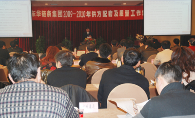 在談到2010年東華供應(yīng)鏈建設(shè)時,張總說,2010年,東華將通過 “質(zhì)量提升年”作為貫穿公司全年的中心工作,特別是要加強(qiáng)供應(yīng)鏈建設(shè),使供方提供的產(chǎn)品質(zhì)量、交貨期、價格、服務(wù)滿足東華市場競爭的需要,同時推進(jìn)事業(yè)部機(jī)制的有效運(yùn)行,強(qiáng)化企業(yè)基礎(chǔ)管理,增強(qiáng)企業(yè)活力,提高顧客滿意度,通過穩(wěn)健持續(xù)地發(fā)展,一步一個腳印,力爭在5-10年內(nèi)成為世界一流鏈傳動企業(yè),并和廣大供應(yīng)商進(jìn)一步建立雙贏互利的合作伙伴關(guān)系。