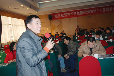 座談會后,東華中高層及銷售人員與廣大經銷商、用戶代表就質量、交貨期、價格、運輸等方面存在的問題進行了分組交流,廣泛聽取了大家的意見和建議。期間,廣大經銷商、用戶代表對位于余杭經濟開發(fā)區(qū)東華的新區(qū)和南、北廠區(qū)中新建的國內一流鏈條生產基地及先進的工藝、工裝水平給予了高度評價。