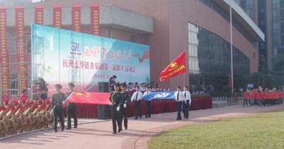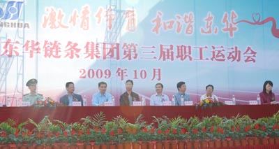 開(kāi)幕式上,總經(jīng)理張世強(qiáng)致開(kāi)幕辭。他說(shuō),在熱烈慶祝祖國(guó)成立60周年的喜慶日子里,我們又迎來(lái)了東華集團(tuán)創(chuàng)建18周年和第三屆職工運(yùn)動(dòng)會(huì)的勝利召開(kāi)。今天,我們19支隊(duì)伍的500多名運(yùn)動(dòng)員,將匯聚成一支蓬勃向上的洪流,在運(yùn)動(dòng)場(chǎng)上切磋技藝,比試身手、互相學(xué)習(xí)、共同提高。本次盛會(huì),將再次展示我們東華人的精神風(fēng)貌,是企業(yè)文化的一次盛會(huì),也是展示自身價(jià)值、凝聚人心、團(tuán)結(jié)拼搏的一次盛會(huì)。必將進(jìn)一步提升企業(yè)文化,弘揚(yáng)企業(yè)精神,為東華集團(tuán)的全面發(fā)展注入新活力。