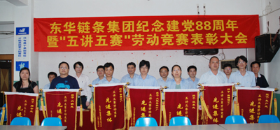 會上,總經(jīng)理張世強作了重要講話。張總說,在“七一”即將來臨之際,我們召開“紀念中國共產(chǎn)黨成立88周年暨五講五賽勞動競賽表彰大會”。首先,我代表集團領導、黨委向受表彰的先進集體和先進個人表示熱烈地祝賀,向他們表示崇高的敬意!號召全體黨員、全廠職工認真學習他們的先進事跡和崇高精神,立足崗位、艱苦奮斗,在生產(chǎn)勞動中為企業(yè)建功立業(yè),在推動東華集團持續(xù)發(fā)展中做出更大的貢獻。