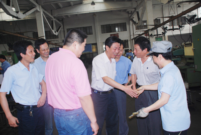 6月18日,宣碧華董事長在東風農(nóng)機集團徐小林總經(jīng)理、興齒金耀民總經(jīng)理、蔣亞龍常務副總經(jīng)理等領導的陪同下,先后來到了興化齒輪公司南、北廠區(qū)和鍛造廠區(qū)的各生產(chǎn)車間親切慰問、看望一線員工。當他看到生產(chǎn)一線呈現(xiàn)出良好發(fā)展態(tài)勢,如一人多機、一人多崗,老舊設備的改造利用,生產(chǎn)區(qū)域、流程管理等等方面的整合、優(yōu)化,特別是員工們的精神面貌煥然一新時,宣董事長非常欣慰,認為這些良好的發(fā)展態(tài)勢對興化朝著有競爭力目標發(fā)展是非常關鍵的。