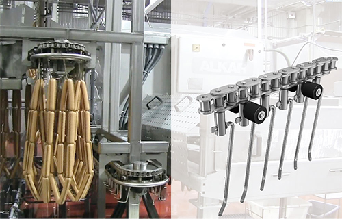 ? 食品行業(yè)主要產(chǎn)品有滾子鏈、長(zhǎng)節(jié)距輸送鏈條、不銹鋼鏈條、各種表面特殊處理的專用鏈條等。廣泛應(yīng)用于各類食品加工機(jī)械,如肉類生產(chǎn)線、制面機(jī)械、制糖機(jī)械、紫菜加工設(shè)備、瓜子加工設(shè)備、香腸加工設(shè)備、乳業(yè)灌裝設(shè)備、冰淇淋生產(chǎn)設(shè)備等。東華根據(jù)不同的工況,采用優(yōu)化設(shè)計(jì)、特殊工藝,選用優(yōu)質(zhì)合金鋼、不銹鋼等材質(zhì),提高了鏈條的耐腐蝕、耐磨損性能,滿足各類設(shè)備的清潔生產(chǎn)、可靠使用的要求。