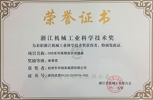 日前,浙江省機(jī)械工業(yè)聯(lián)合會(huì)通過(guò)視頻會(huì)議召開(kāi)了五屆二次會(huì)員代表大會(huì)和五屆三次理事會(huì)。會(huì)上公布了54項(xiàng)產(chǎn)品及技術(shù)創(chuàng)新成果獲得“2019年度浙江機(jī)械工業(yè)科學(xué)技術(shù)獎(jiǎng)”。東華自主開(kāi)發(fā)的“08B系列高精度尖齒鏈條”和“PT133F38重載型梯級(jí)鏈條”兩項(xiàng)高端鏈條產(chǎn)品榮獲三等獎(jiǎng),這是東華產(chǎn)品創(chuàng)新項(xiàng)目連續(xù)八年榮獲浙江機(jī)械科技獎(jiǎng),也是獎(jiǎng)項(xiàng)名單中唯一鏈傳動(dòng)企業(yè)的高端產(chǎn)品獲獎(jiǎng)。
