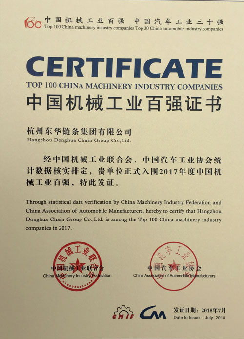 日前,第十四屆中國(guó)機(jī)械工業(yè)百?gòu)?qiáng)企業(yè)信息發(fā)布會(huì)在山東臨沂召開(kāi)。會(huì)上發(fā)布了2017年度中國(guó)機(jī)械工業(yè)百?gòu)?qiáng)企業(yè)名單。東華鏈條集團(tuán)以全年穩(wěn)健上升的經(jīng)營(yíng)業(yè)績(jī)居第56位,比2016年上升6位,這是東華鏈條集團(tuán)連續(xù)三年榮登中國(guó)機(jī)械工業(yè)百?gòu)?qiáng)榜。
