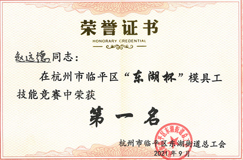 金秋送爽,丹桂飄香,在“9.26工匠日”來(lái)臨之際,公司員工趙遠(yuǎn)德奪得臨平區(qū)“東湖杯”模具工技能競(jìng)賽冠軍。