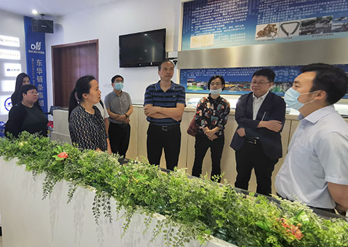 本次區(qū)政協(xié)科技界別組委員一行主要到東華了解公司技能人才評定、博士后科研工作站及人才引進培養(yǎng)等方面的情況。廖副總等領(lǐng)導陪同政協(xié)人員參觀了集團新區(qū)生產(chǎn)基地、徐長明鉗工技能大師工作室、展廳等。管理部副總經(jīng)理劉冬根向大家介紹了東華在人才引進、工匠培養(yǎng)、博士后科研工作站建設(shè)等方面的情況。