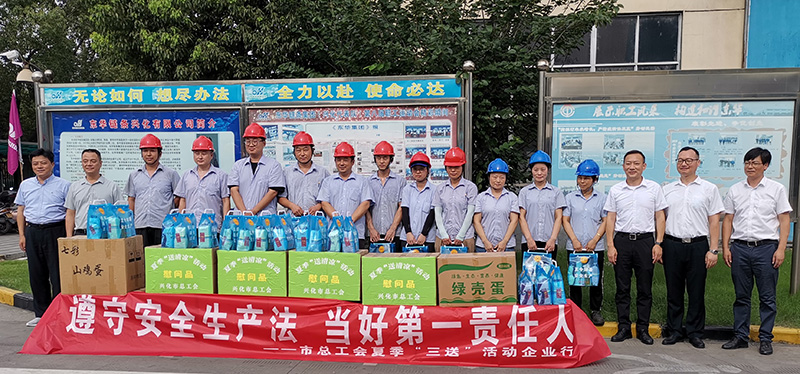 最后,來訪領(lǐng)導向一線員工開展“送安全、送法律、送清涼”關(guān)愛活動,把200份防暑物資送到員工手中,并祝大家身體健康,工作取得更好的成績。