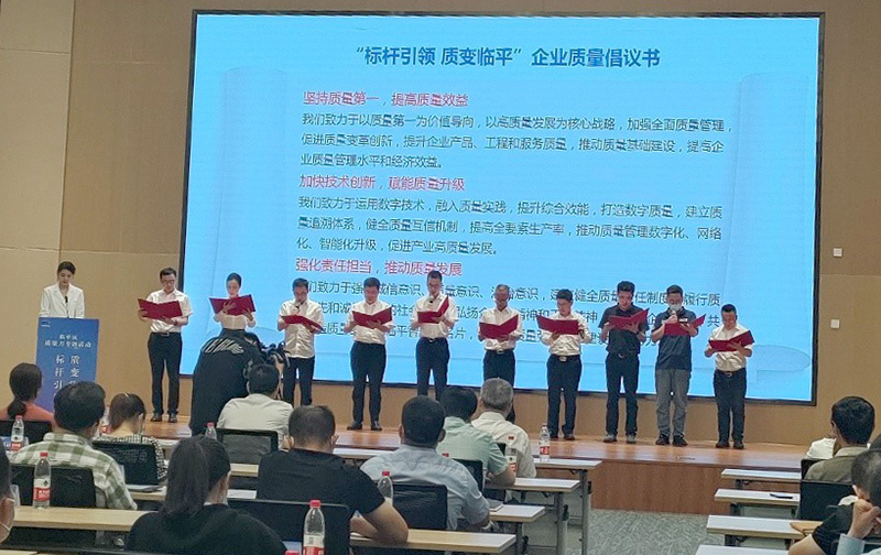 9月16日,臨平區(qū)質(zhì)量強(qiáng)區(qū)領(lǐng)導(dǎo)小組辦公室組織召開“標(biāo)桿引領(lǐng),質(zhì)變臨平”質(zhì)量月專題活動。東華作為區(qū)政府質(zhì)量獎(jiǎng)企業(yè)應(yīng)邀參加“臨平質(zhì)量故事”分享,副總經(jīng)理廖杭州上臺宣讀了“標(biāo)桿引領(lǐng),質(zhì)量臨平”企業(yè)質(zhì)量倡議書。