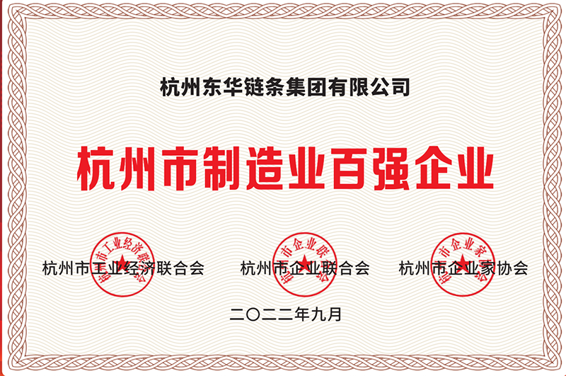 日前,杭州市工業(yè)經(jīng)濟(jì)聯(lián)合會(huì)、企業(yè)聯(lián)合會(huì)、企業(yè)家協(xié)會(huì)在市民中心召開(kāi)了2022杭州市百?gòu)?qiáng)企業(yè)榜單發(fā)布會(huì)。東華鏈條集團(tuán)躋身杭州市制造業(yè)百?gòu)?qiáng)企業(yè)榜第44位。