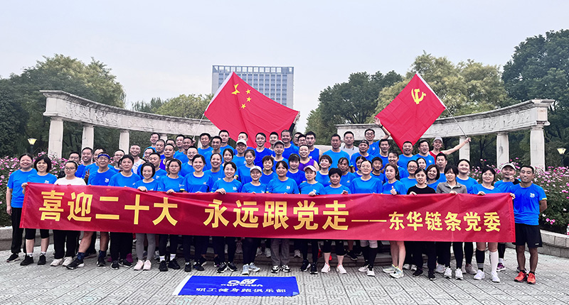 早晨六點(diǎn),東華鏈條黨委聯(lián)合東華健身跑俱樂部組織黨員及會(huì)員開展“喜迎二十大,永遠(yuǎn)跟黨走”健身跑活動(dòng),80多名員工以健身跑的方式喜迎黨的二十大勝利召開。