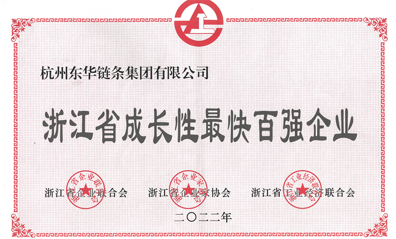 日前,東華鏈條集團(tuán)被浙江省企業(yè)聯(lián)合會、浙江省企業(yè)家協(xié)會、浙江省工業(yè)經(jīng)濟(jì)聯(lián)合會授予“浙江省成長性最快百強(qiáng)企業(yè)”榮譽(yù)稱號。