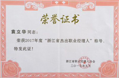 集團副總經(jīng)理袁立華被授予“浙江省杰出職業(yè)經(jīng)理人”稱號