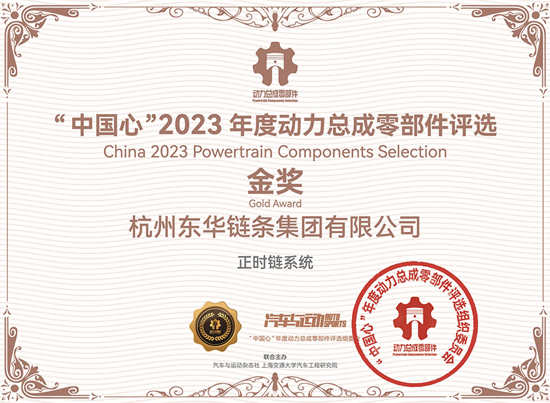 10月27日,“中國心”2023年度動力總成零部件評選在揚(yáng)州市拉開帷幕。東華鏈條集團(tuán)汽車鏈?zhǔn)聵I(yè)部總經(jīng)理邢建恒、營銷處處長汪恭兵攜東華最新汽車正時鏈系統(tǒng)解決方案的CL04DF24-2x3W(132L)正時鏈系統(tǒng)、CL05DF2(a)4-2x4W(130L)正時鏈系統(tǒng)、CL04DF26-4x4W(174L)正時鏈正時系統(tǒng)參評,這三套正時系統(tǒng)產(chǎn)品已大批量配套國內(nèi)主流汽車發(fā)動機(jī)。經(jīng)過專家組現(xiàn)場評審,2023年度動力總成零部件共評出六名金獎和四名優(yōu)秀獎。東華參選的“正時鏈系統(tǒng)”獲得“中國心”2023年度動力總成零部件金獎。獲獎理由為東華鏈條具備完全自主正向系統(tǒng)設(shè)計、仿真分析以及系統(tǒng)動態(tài)測試能力,其研發(fā)的輕量化、低摩擦、高耐磨、高疲勞鏈系統(tǒng)產(chǎn)品在國內(nèi)汽車主機(jī)市場占有率達(dá)到22%。創(chuàng)新的銷軸表面滲釩專利技術(shù)廣泛應(yīng)用于最新混動專用發(fā)動機(jī)、渦輪增壓發(fā)動機(jī)、柴油發(fā)動機(jī)和甲醛發(fā)動機(jī)。