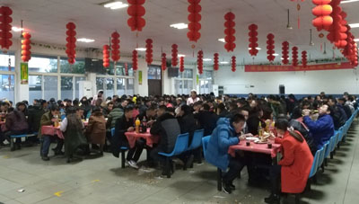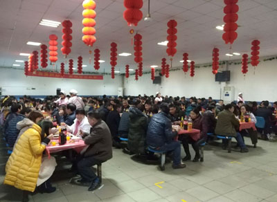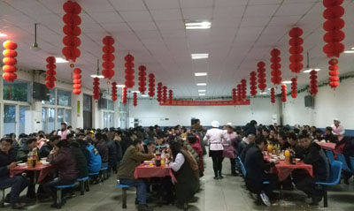1月25日晚,東華總部南區(qū)和新區(qū)食堂燈火通明,紅燈高掛,歡聲笑語(yǔ),400多名外地留在杭州過(guò)年的員工在這里舉辦一場(chǎng)“同吃年夜飯,歡度除夕夜”年會(huì)活動(dòng)。吃的都是普通的家常菜,但熱熱鬧鬧的過(guò)年氣氛卻提前來(lái)到了。