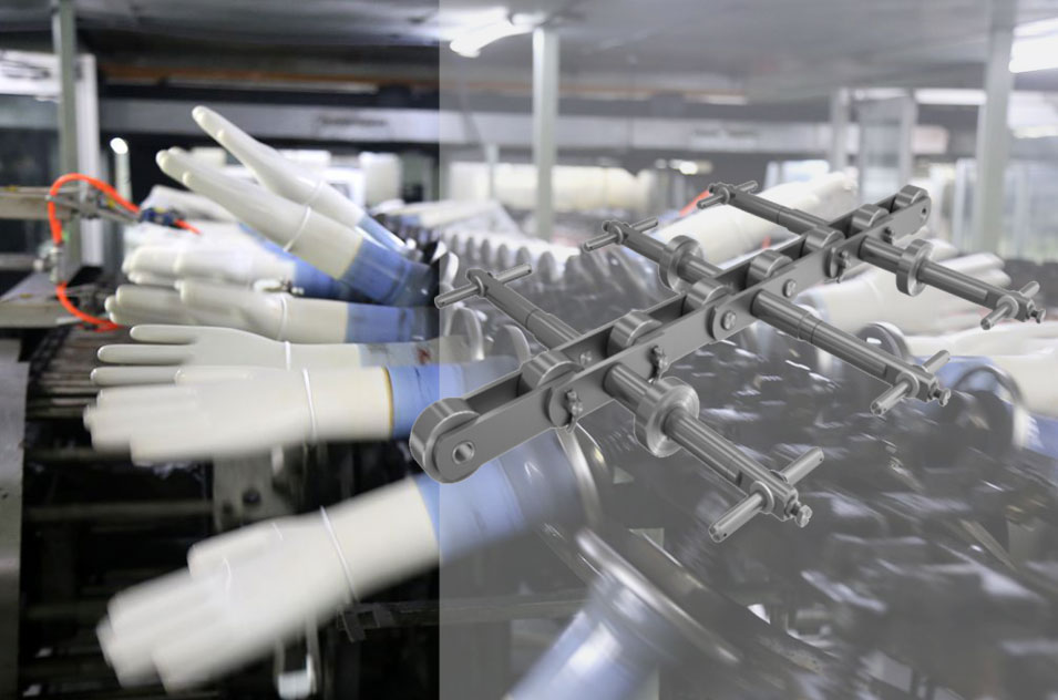 ● 橡膠手套鏈已經(jīng)形成系列化產(chǎn)品,通過特殊設計,滿足橡膠手套生產(chǎn)線更長、更快、優(yōu)質(zhì)高效的制造需求。