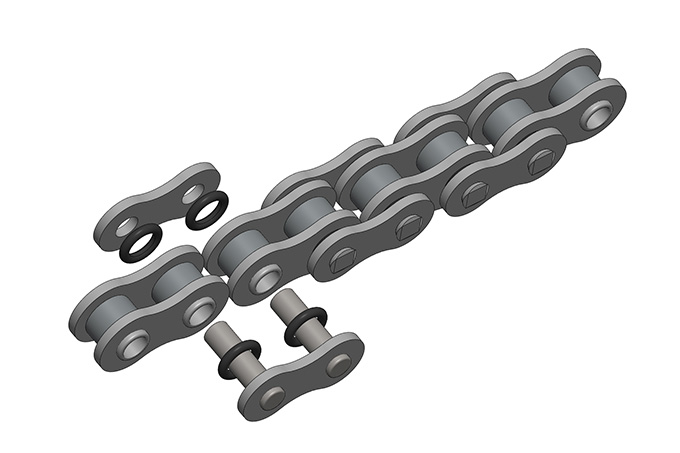 ● O形密封圈滾子鏈互換性尺寸符合ISO標準,與標準鏈輪相匹配;外、內(nèi)鏈板之間裝有O形密封圈,以防止使用過程油脂流失及雜物進入鏈條軸套間隙,適用于耐磨損要求較高且不能經(jīng)常加油潤滑的使用環(huán)境。