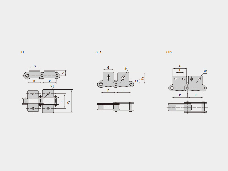 單節(jié)距帶K1附件 | 單節(jié)距帶SK1附件 | 單節(jié)距帶加長銷軸附件 |