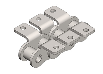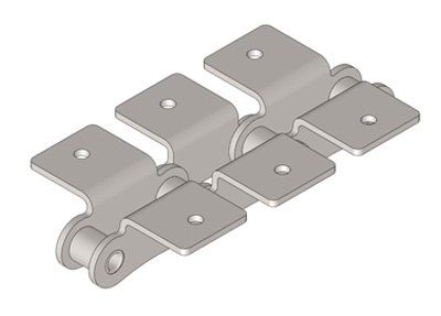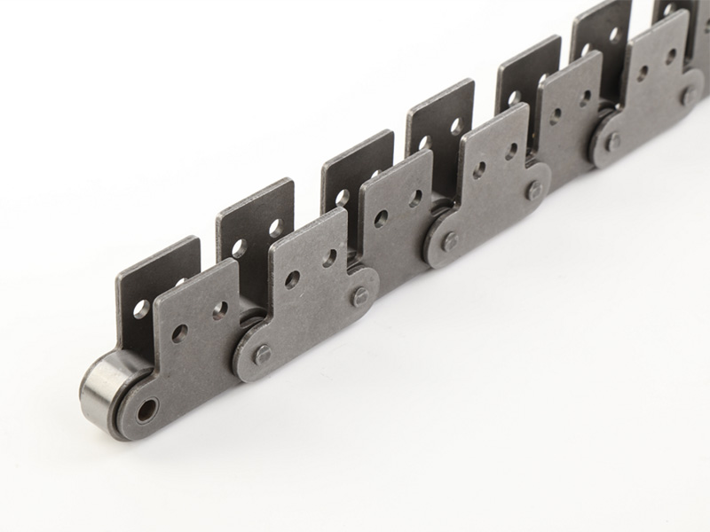 ● 輸送用滾子鏈的附件根據(jù)使用要求設(shè)計不同的結(jié)構(gòu)形式,具有廣泛性、多樣性等特點,其中水平壓彎附板、帶孔直立附板、加長銷軸等附件應用較為廣泛。