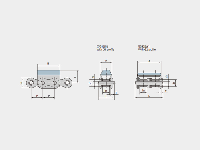 ● 橡膠附板鏈是在標準短節(jié)距精密滾子鏈作為基鏈的基礎上加裝橡膠頂板的鏈條,基鏈符合ISO、ASME/ANSI、DIN、JIS等標準;