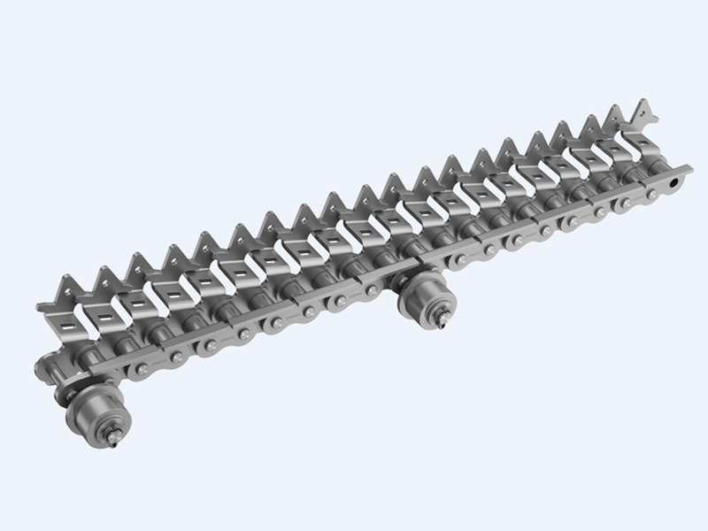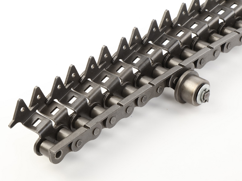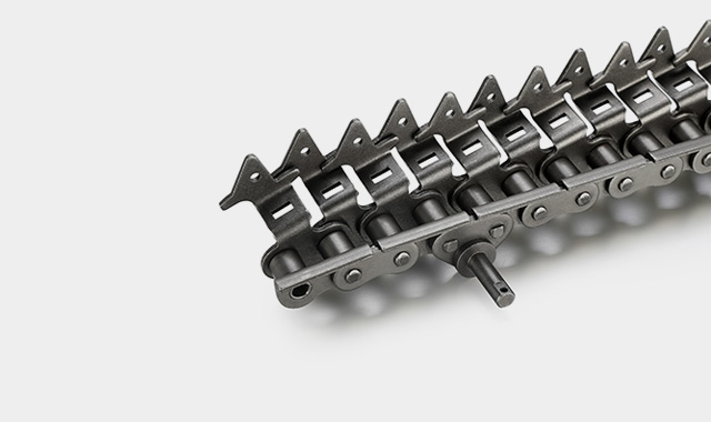● 印鐵烘房線鏈條是在標(biāo)準(zhǔn)短節(jié)距精密滾子鏈作為基鏈的基礎(chǔ)上加裝特殊附件的鏈條;典型產(chǎn)品結(jié)構(gòu)為一側(cè)通過(guò)安裝內(nèi)、外支撐片來(lái)保持鏈條直線度,另一側(cè)通過(guò)內(nèi)外附板安裝花架運(yùn)輸物品。
