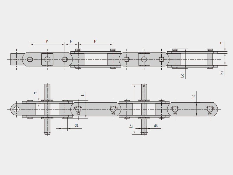 A型雙鉸接輸送鏈,用于方形軌道 | S型雙鉸接輸送鏈,用于方形軌道 | Q型雙鉸接輸送鏈,用于方形輕型軌道 |