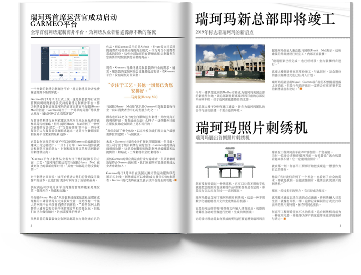 · 瑞珂瑪首席運營官成功啟動GARMEO平臺 · 瑞珂瑪新總部即將竣工 · 瑞珂瑪將在美國長灘市運動服飾印花展揭曉最新機型及刺繡定制商務平臺 · 瑞珂瑪美國區資深銷售主管與刺繡商家分享心得體會