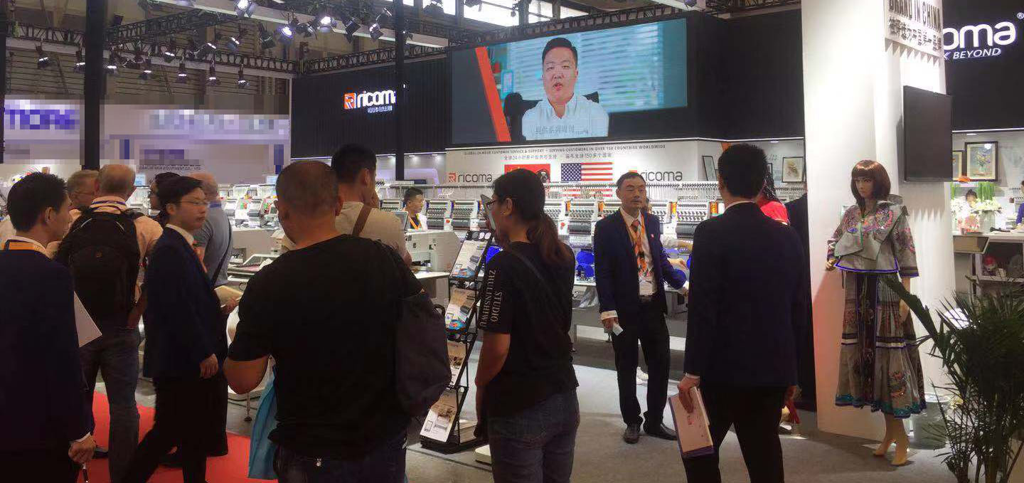 機(jī)、80色刺繡機(jī)等,新的機(jī)器吸引了眾多觀眾前來咨詢了解。絡(luò)繹不絕的人們讓現(xiàn)場非常火熱。