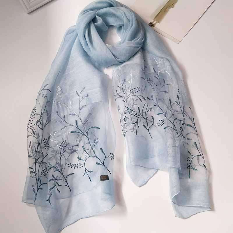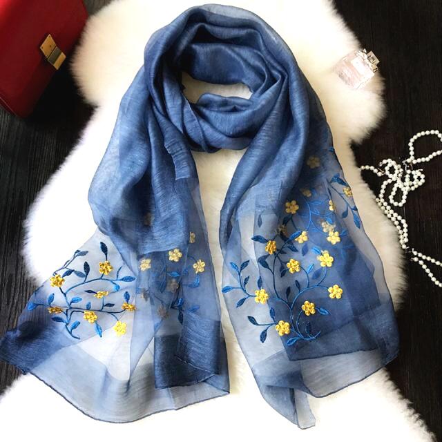 時尚優雅的綢緞絲巾,帶給你柔美的氣質,淡黃色的小花輕輕點綴,任何場合都可以輕松駕馭。