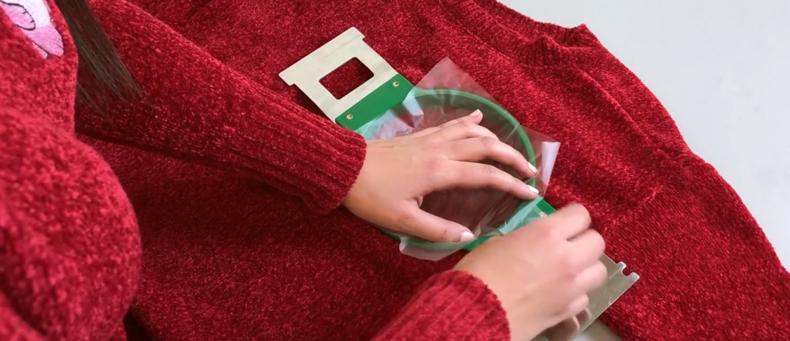 先準備好兩張襯紙,再找好要刺繡的位置,再用繡框固定住。