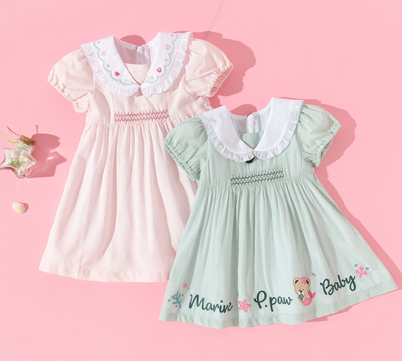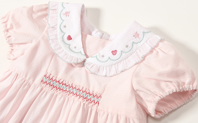 娃娃領繡花連衣裙,加上荷葉邊的點綴,真是又可愛又乖