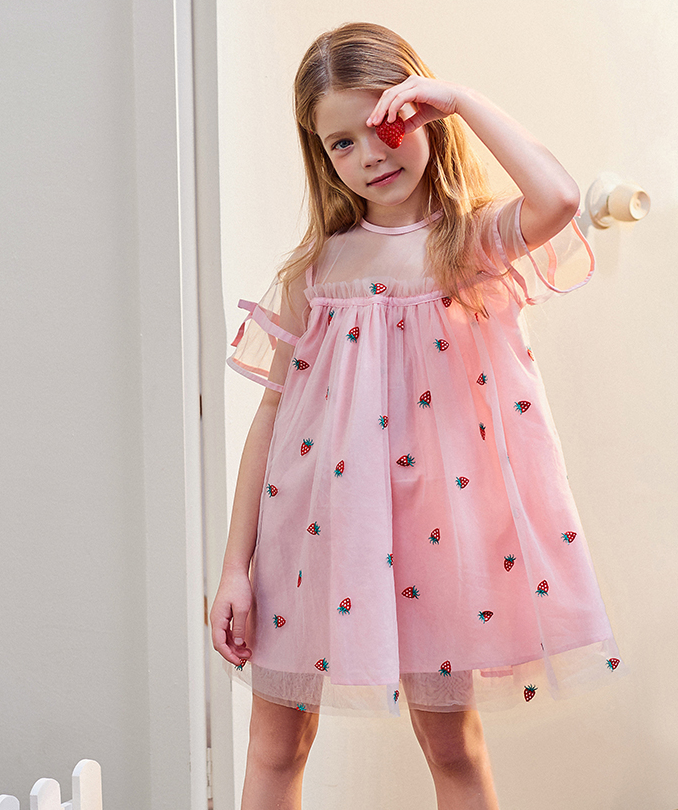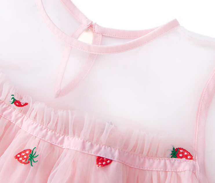 小草莓刺繡網紗連衣裙,穿上就是甜美女孩