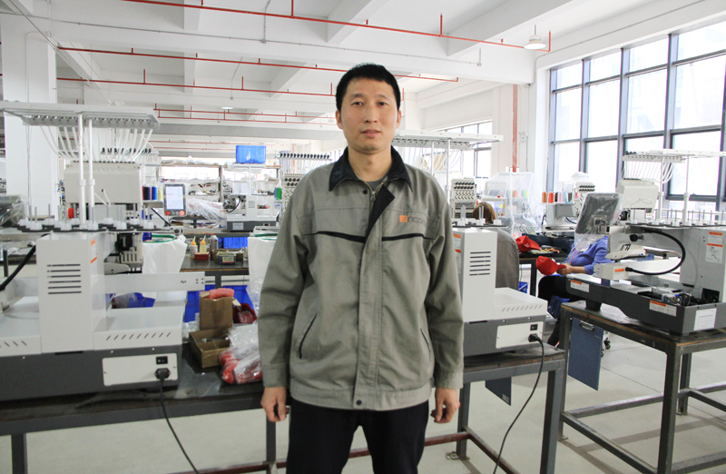 王強(qiáng)國,2010年加入瑞珂瑪,瑞珂瑪繡花機(jī)TC系列機(jī)型車間主管。11年時(shí)間里,他憑借著自己的好學(xué)和勤懇從新手到主管。作為車間主管,除了要有過硬的技術(shù)本領(lǐng)之外,還得用自己的“人品”說話,樂于助人、待人友善、愛崗敬業(yè)是同事們對(duì)他夸贊最多的詞匯。