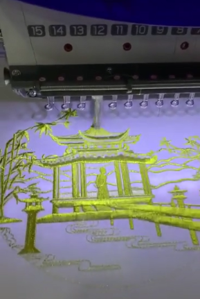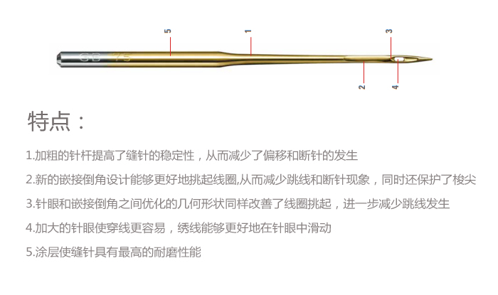 由于金銀線外層有一層金屬薄膜,當線穿到針孔的時候,由于磨擦使針產生熱量溶斷金屬薄膜使其斷線,這時候我們可以使用一些潤滑劑,俗稱“線油”。這可以使其更好地過線,讓其降低磨擦,會相對的減少斷線率。或者是把針的針孔往電腦頭方向偏一些過去,而繡普通繡線的話就要往機尾的方向偏一些,不過不要太多大概在0.5mm左右。