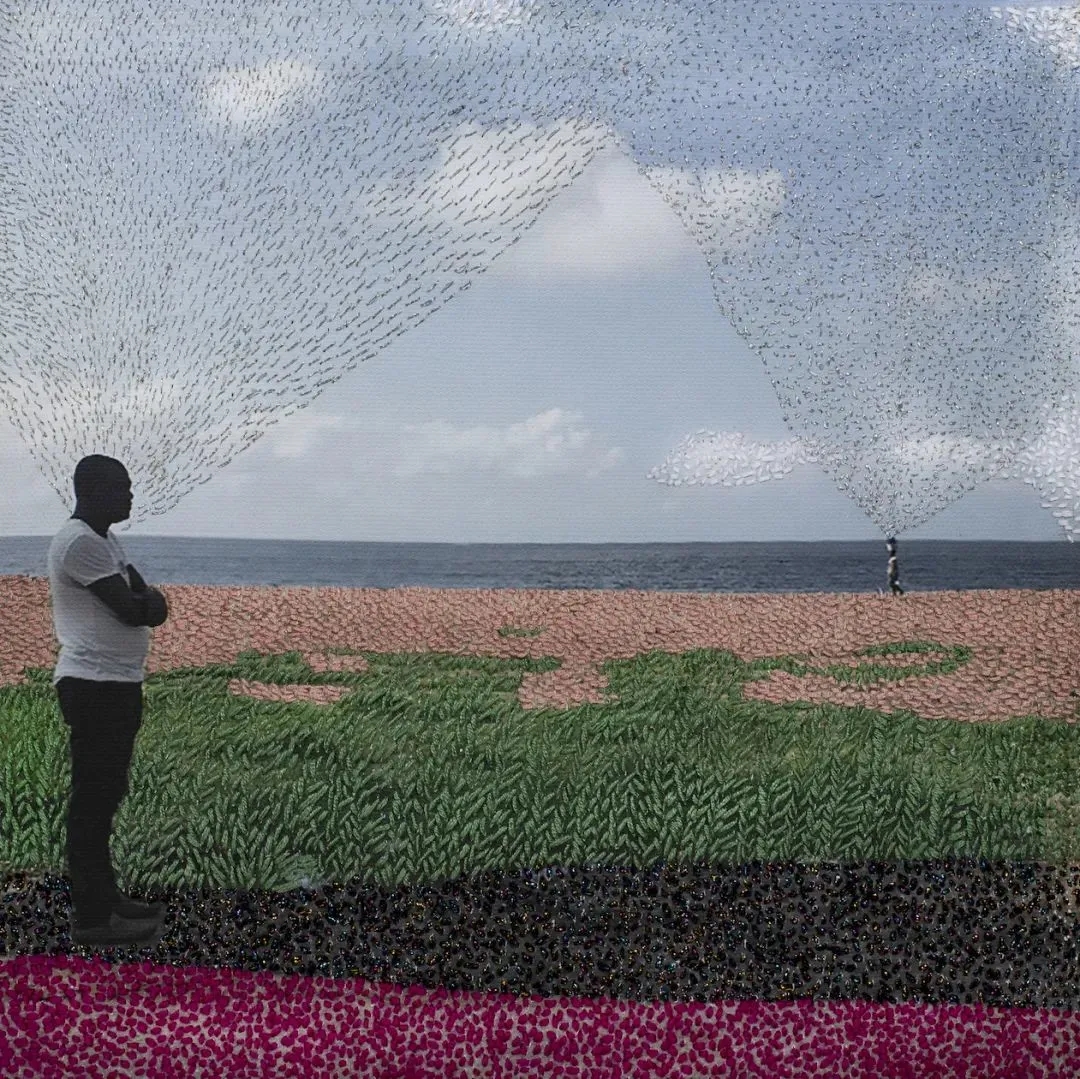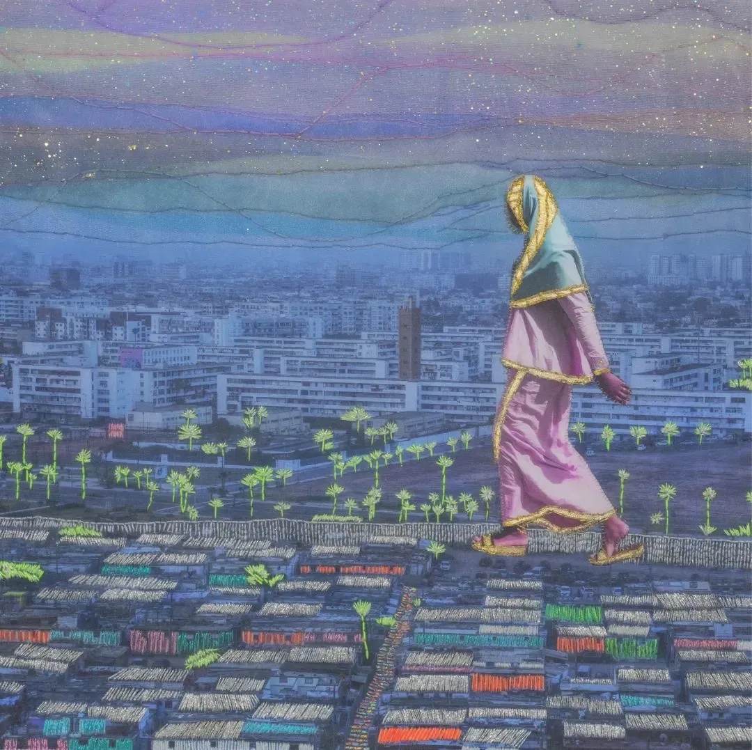 她把照片打印在畫布上,用刺繡的方式開始創作,刺繡也像是一種冥想,帶著療愈的象征。