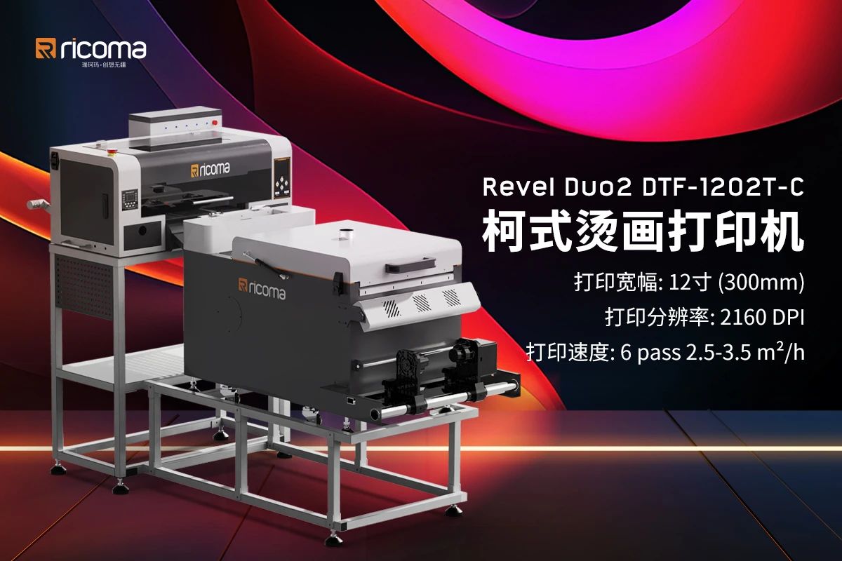 此外,瑞珂瑪還現場展出了最新研發的 DTF 柯式燙畫打印機,與熱轉印機一起為參展者提供了最前沿的紡織印花體驗,展現了瑞珂瑪行業領先的技術和研發創新實力。