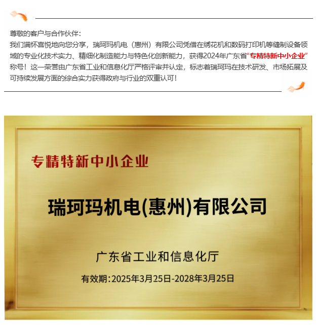 喜訊!瑞珂瑪榮獲2024年廣東省“專精特新中小企業”稱號!